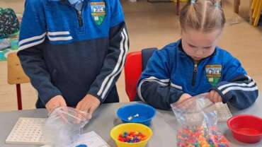 In Junior and Senior Infants we regularly work on our fine motor skills. This helps to develop our pincer grip which is important for handwriting. The games are fun too!!