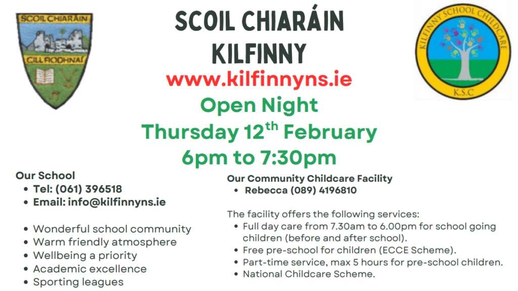 We will hold our Open Night on 12th of February in the school. We would love to meet prospective students and their parents. Come have a chat with school staff and our Parents’ Association. Representatives from Kilfinny School Childcare, our on-site childcare providers, will be present on the night too. We look forward to meeting you!