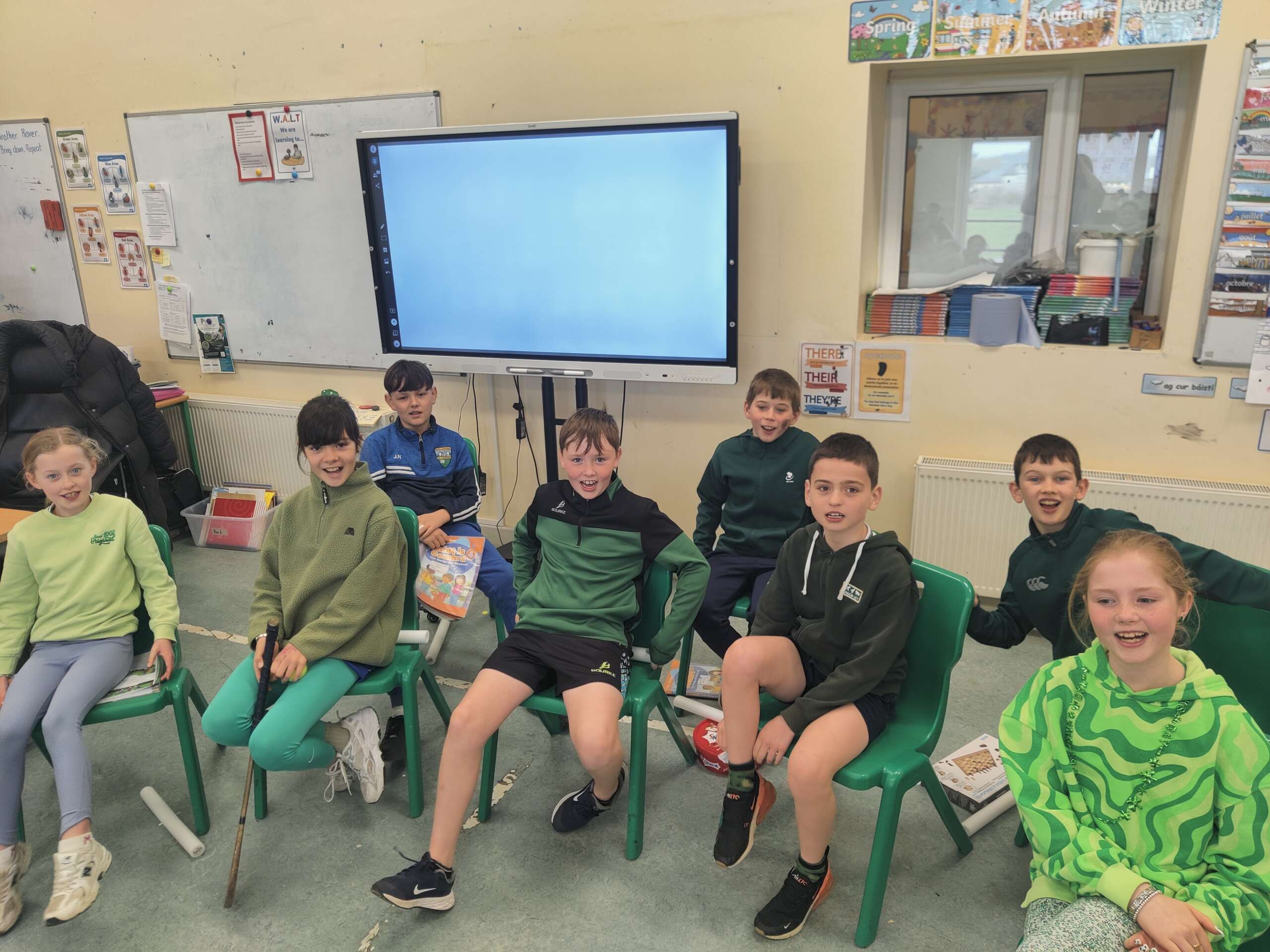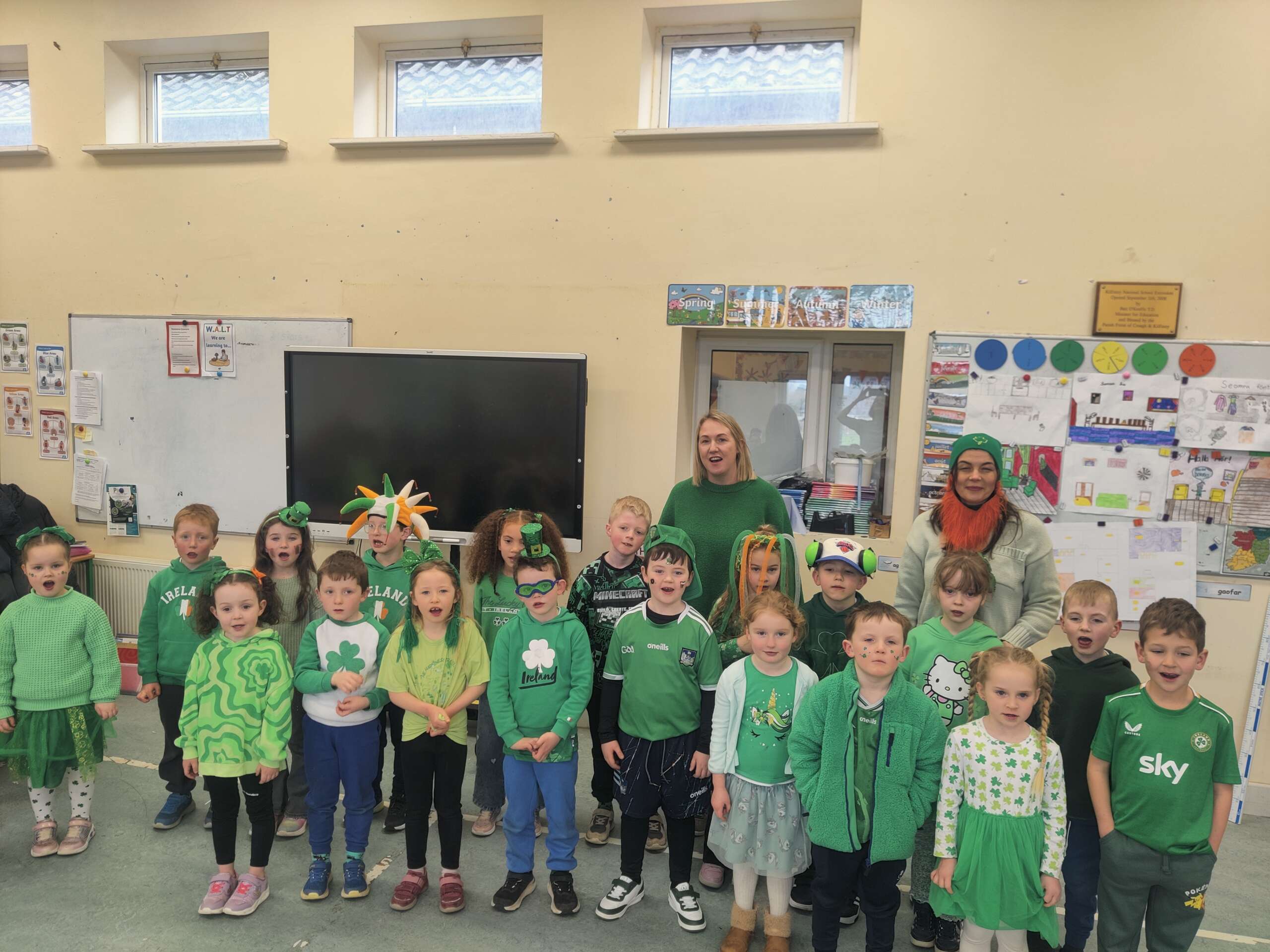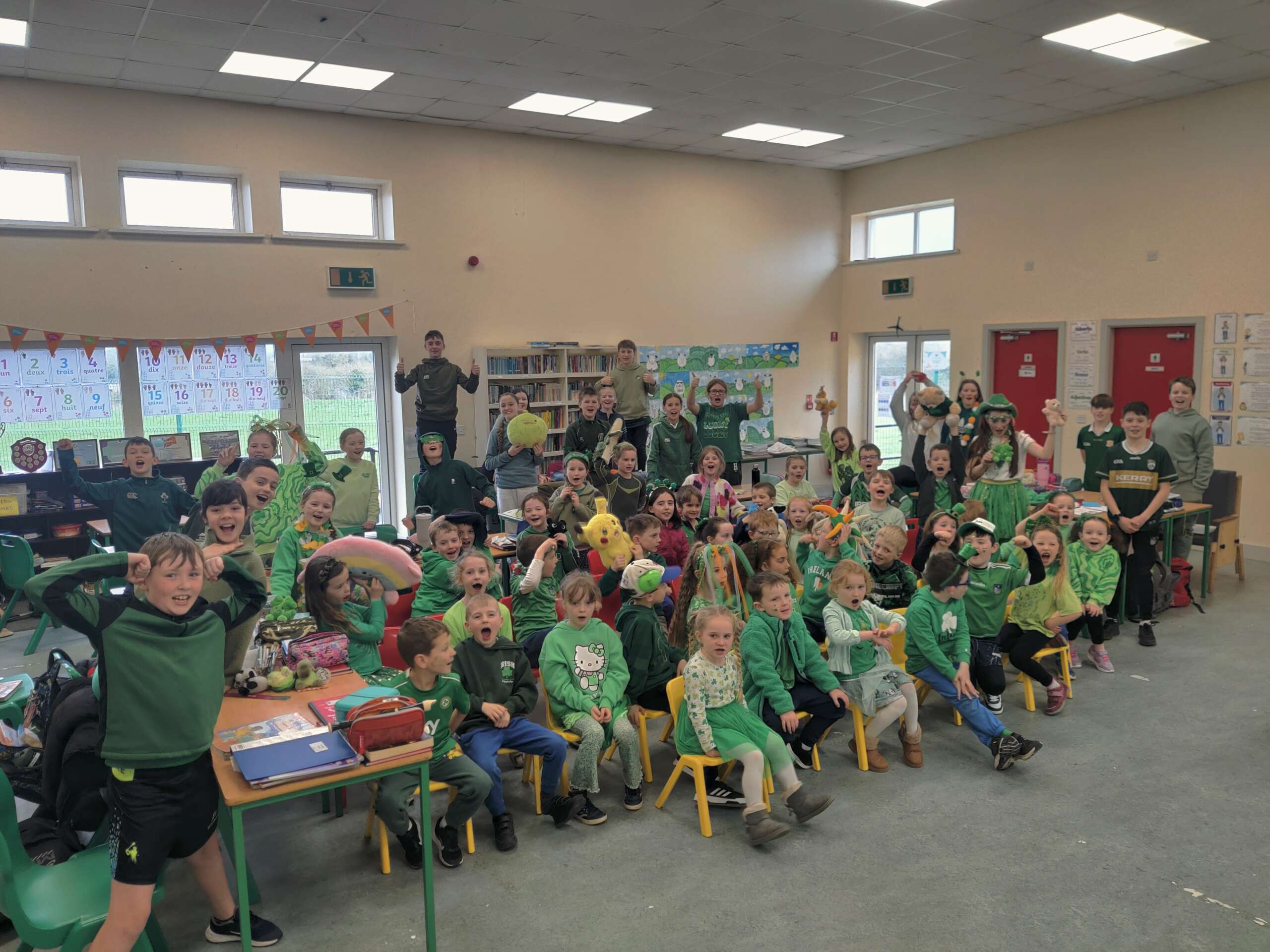 Bhí am tharr barr againn ag ceiliúradh ár dteanga is ár gcultúr an tseachtain seo. We had lots of different activities – a whole school table quiz as Gaeilge, watching some cartoons on Cúla 4, traditional songs and read alouds of Irish stories. We also joined lots of other schools across Ireland for an online movement break. On Friday we held our Lá Glas, with drama, music and dancing. All of this ties in nicely with our Gaelbhratach work. Thank you to all the pupils and staff for their enthusiasm with these events, and in particular Mrs O’Mahony, our Gaelbhratach co-ordinator. Enjoy the photos in the slideshow and a selection of videos below that.